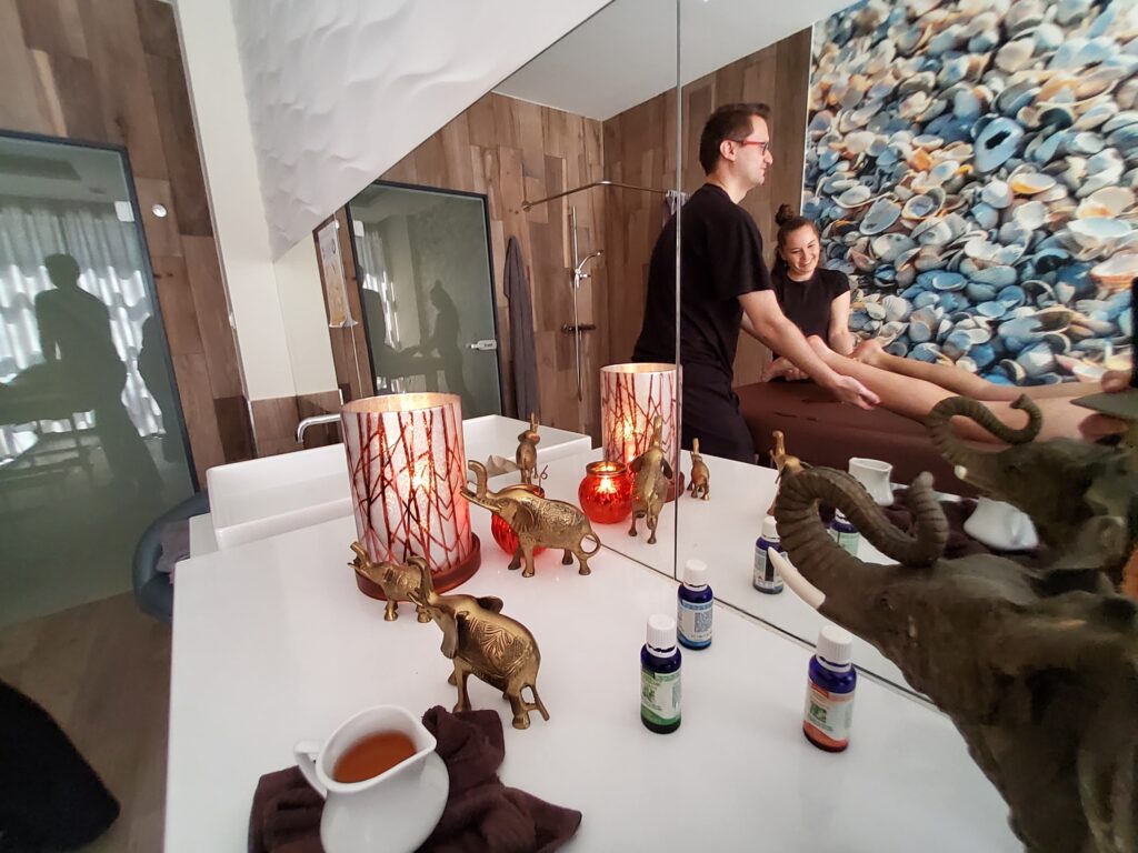 Masaż wykonywany jest przy użyciu dużej ilości oleju sezamowego.